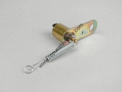 Interruptor de freno universal normalmente abierto, para Vespas y Lambrettas que no tengan interruptor de freno y se lo quieras adaptar, se instala en la leva de freno trasero, cuando se estira del muelle se juntan los cables encendiendo la bombilla.