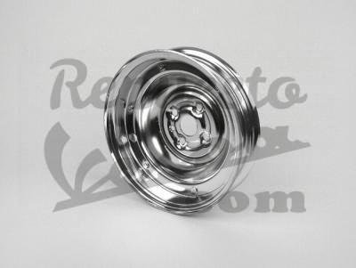 Llanta cromada con sistema de anclaje de 4 tornillos y 10 pulgadas válida para Vespa 50 y 75 primera serie con número de chasis 08C.