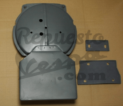 Soporte de la rueda de repuesto, piloto trasero y porta matrícula en color gris, reproducción del original, válido para Vespa 75 y 125 Super. También se puede poner en la Vespa SL, 75U2 y Primavera.