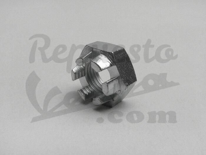 Tuerca del tambor trasero válida para Vespa 125 del 53 al 64, 150S, 125 y 150 CL, 200 DS, 200 DN, 50, 75 y para tambor delantero para Vespa 150s del 64, Sprint, GS, 160, GT, CL, DS, Super, SL y Primavera.Medidas M14X1,50.